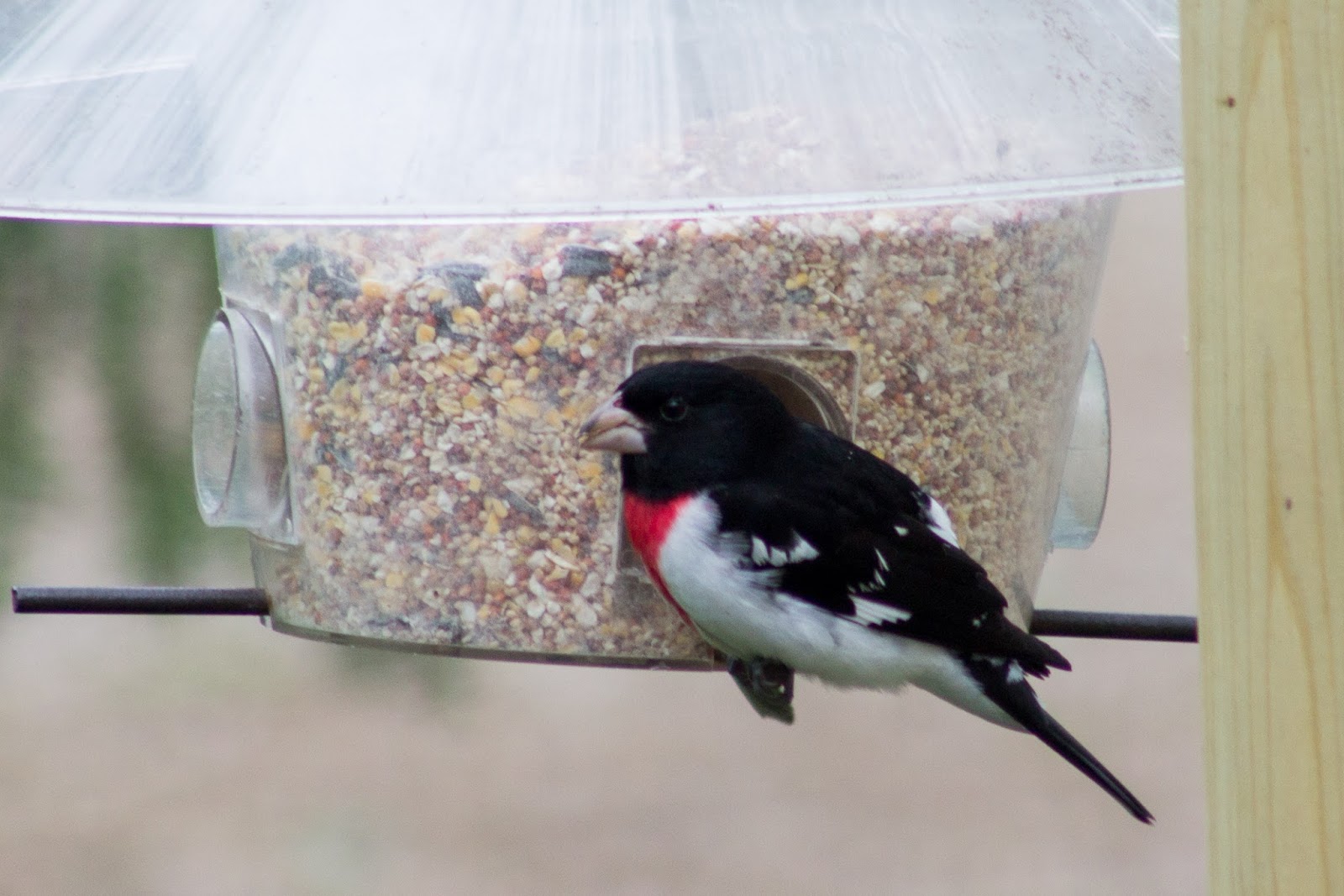 This little fellow was at my feeder this morning. I had never seen such a bird before. I grabbed Jacob’s camera (he has the zoom lens) and took several pictures. Then I grabbed my bird book to look him up. A red-breasted grosbeak! I was so excited to see a new bird! (I was equally excited to see my second indigo bunting last week, but I didn’t have a camera handy!)