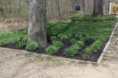 While The Mister was out working in the field, I was working on some of the flower beds. The previous owners had beautiful landscaping, but they used wood chips for mulch and we didn’t like the looks of that. While it seems easy enough to throw down some black mulch, these beds were all overflowing with old mulch that had to be removed first.