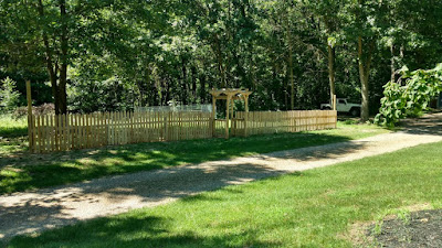 We saw an arbor on sale at Menard’s awhile back and brought it home and assembled it. For several weeks it stood as a gallant sentry to an otherwise unblocked garden area. We ordered pickets but then the weather got hot and we got busy working on the pasture and it wasn’t until the last couple of days that we finally got busy putting up the front side of the picket fence. We won’t get much more of it done this year, although I hope to get it painted and get the gate up, but it at least allows me to put some perennials in place this fall and it gives the garden area a slightly better appearance – sort of a step up from “weedy mess” and into “unfinished project” but we’ll take the upgrade in status.