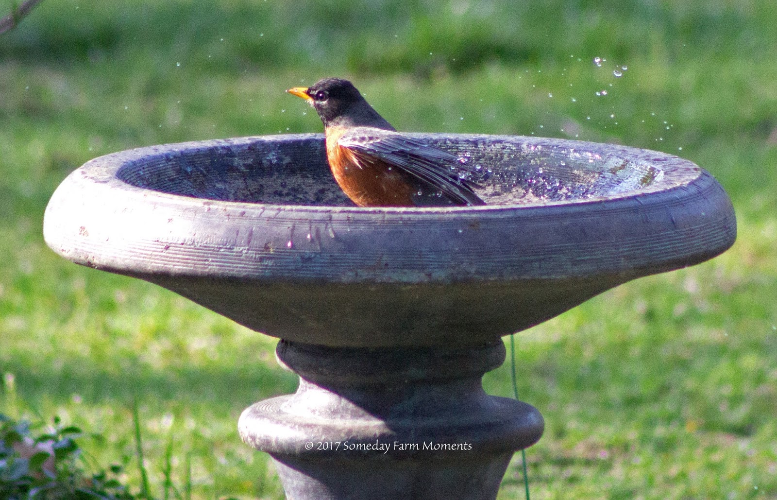 Robin out splashing in the bird bath.