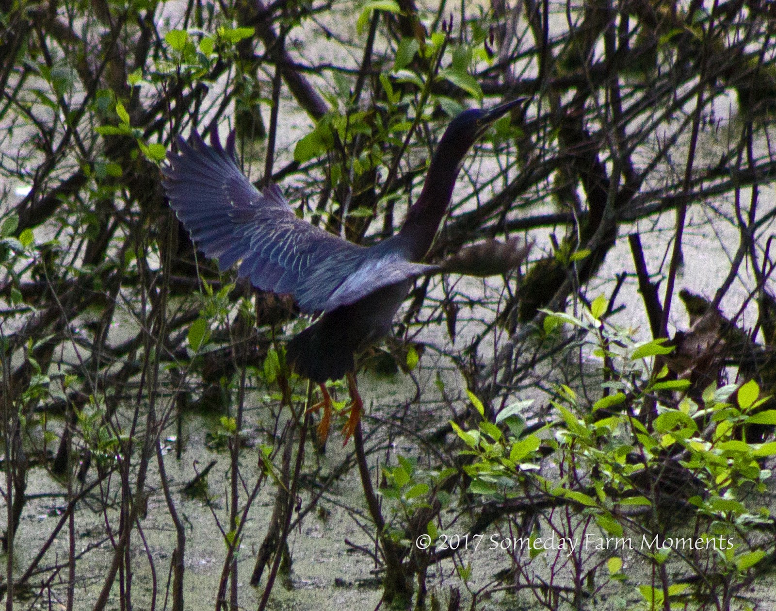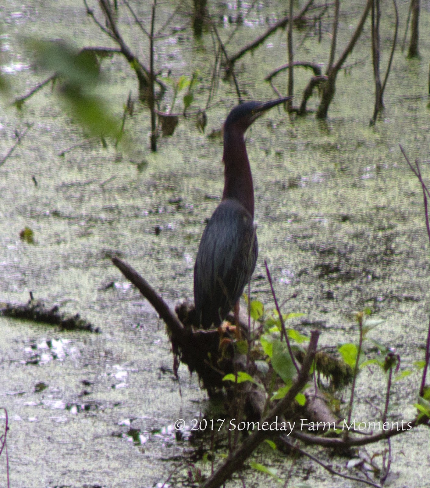 Out back this week, we saw a heron. The Mister spotted it first and I grabbed my camera as fast as I could as the herons tend to be very skittish and fly quickly. This one was apparently of the same mindset we were as it stuck around and didn’t seem to mind us opening windows to get a better picture. In fact, when I finally said, “I wish it would fly so I could see its great wings,” the Mister tried everything he could to get it to fly and it wasn’t going to be bothered.