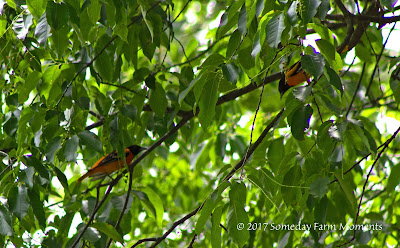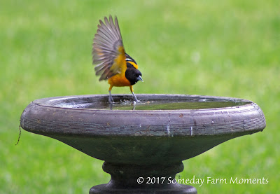 I was super excited to see my first orioles this week! I had actually been hearing their song for a couple days (not knowing what it was) before I saw them. After seeing the first one, we went out and bought two feeders, hoping to entice them to stay.