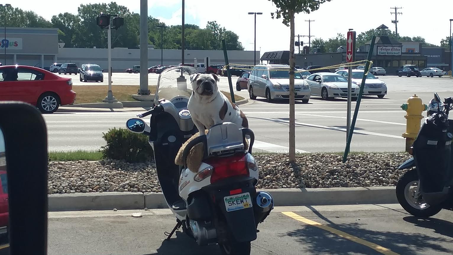The other day while buying my eighteenth sample of paint that I still didn’t like for the living room running errands in town, I saw this dog waiting at Chick-Fil-A. I wish I would have waited around to see exactly how this might have worked. I mean, where is he going to ride when his owner returns and how, exactly, is the owner going to keep the dog out of the chicken?
