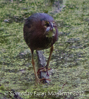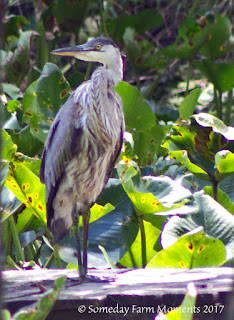 This beautiful blue heron liked to hang out on the dock. He was very skittish, so I had to creep down the lane and tiptoe through the weeds in order to get a good look at him.