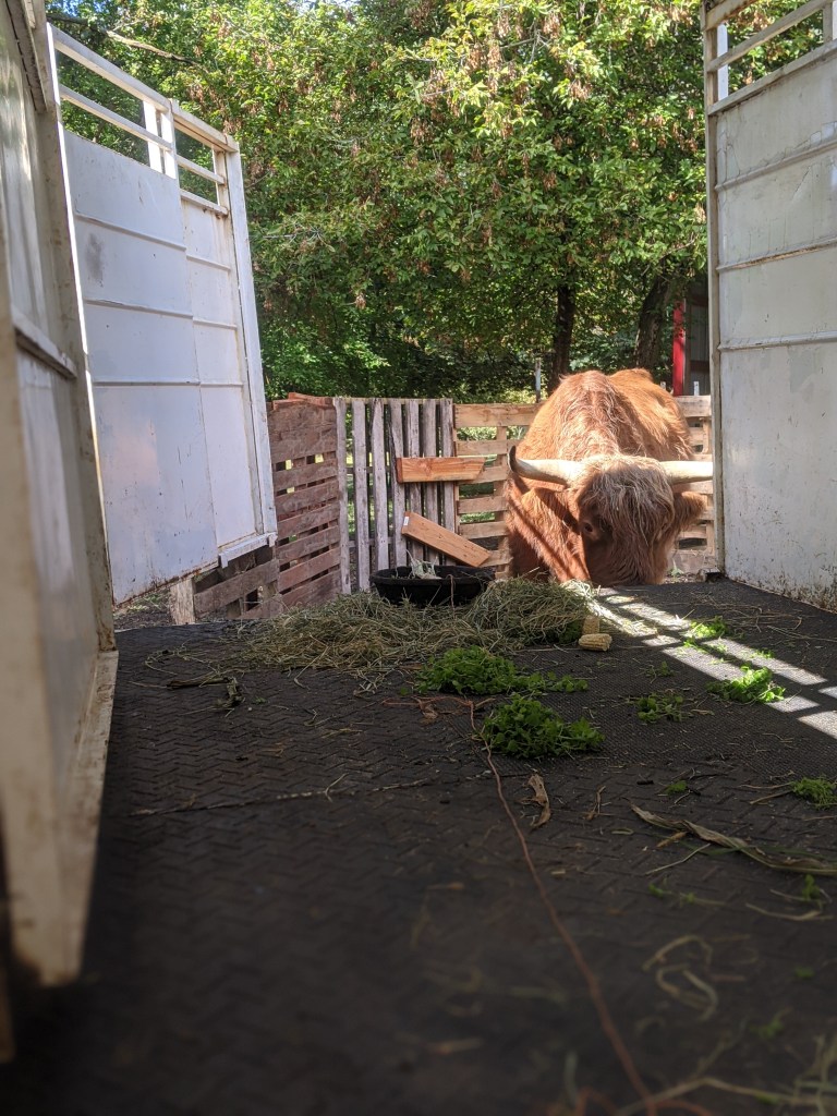 The Mister has tried twice, in vain, to get Samson loaded in a trailer. It’s heartbreaking for all, as we really don’t want to see him go, and we know as we coax and plead with him that the end game isn’t a pleasant outcome for the bull in question. We aren’t exactly taking him to some other farm.