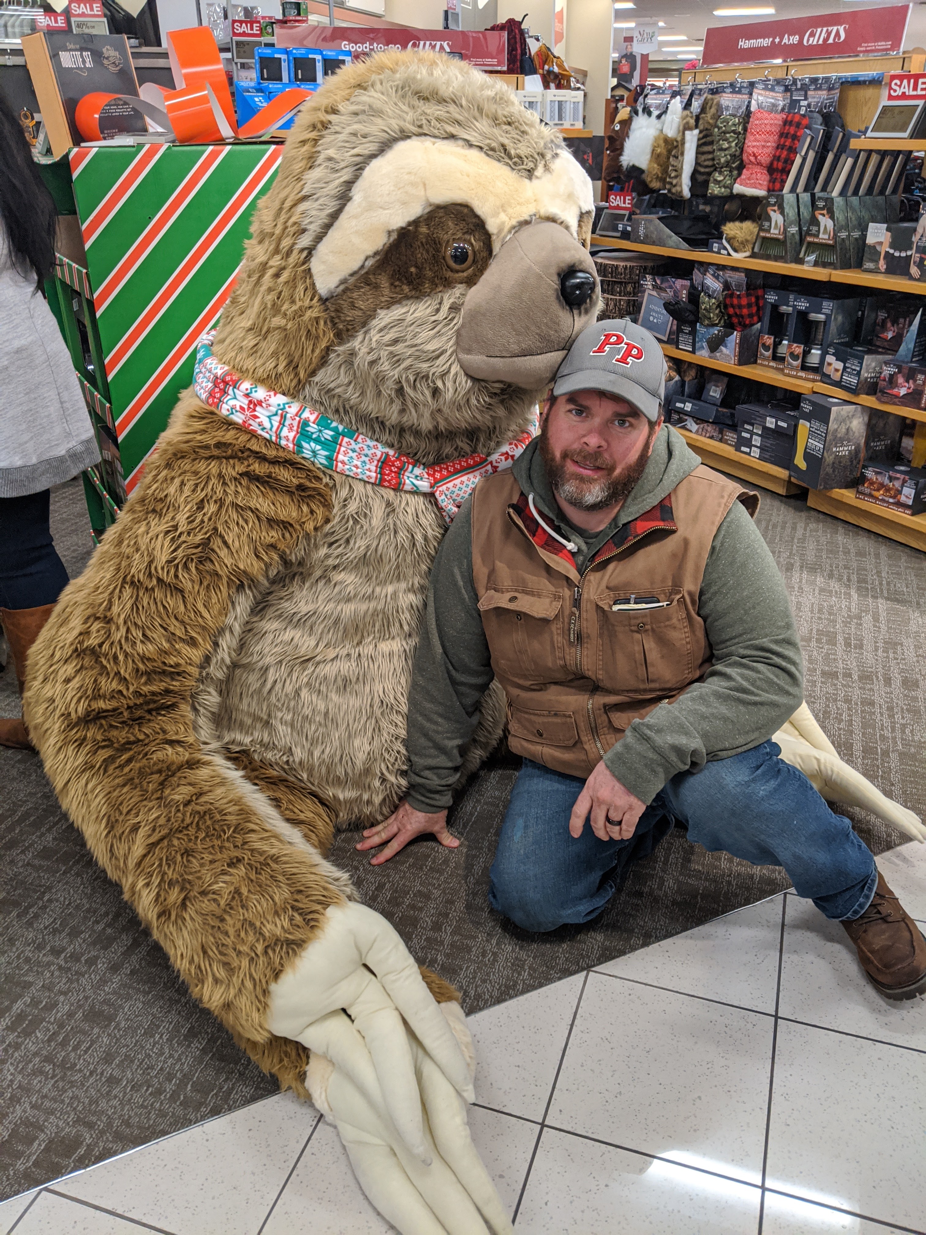 James knows this. He knows that it’s never about the destination or crossing things off a list (now even my sister is disappointed in me). He knows that I have no set plan when we leave the house other than to leave.the.house. And so he does everything he can to make running errands fun. He uses props in stores to serenade me. He puts on crazy hats or glasses and acts like a clown. He will spell things with decorative letters. He will pose with enormous stuffed sloths or stand up cut-outs of Paula Dean. He will make snarky comments about what we should buy (usually suggesting all the things his mom keeps trying to give us). He will suggest that I buy slippers just so Trudy can bury them in the back yard. In short, he spends the entire time making me laugh.