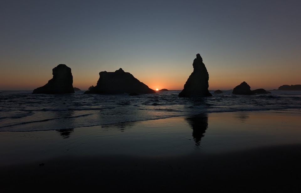 I witnessed Thor’s Well, The Devil’s Churn, Spouting Horn, Cape Perpetua and all the small coves and beaches along the way where the combination of massive rock and massive wave created jet-like sounds that reverberated in my soul. For seven days and nights I was in earshot of the ocean. The rhythmic tide was my constant companion on this otherwise solo journey. I alternated between the highest cliffs to my toes in the water, back and forth, all day long every day. I was awake as the clouds rolled in over the water and I fell asleep only after the sun had set beyond the horizon.