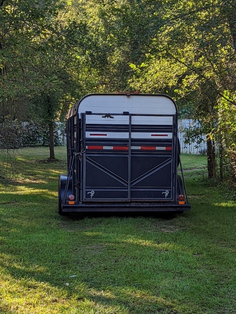 Over the past ten days, James has positioned the trailer at the shelter and moved gates and posts to help facilitate loading cows who have never been trailered. He has been out there every day coaxing all three into the shelter in preparation for today. Feeling like the worst kind of traitor, he has gotten them comfortable with the strange metal carrier and with all three of them being in the small shelter together. But, the fact that none of them would ever set even one foot inside the trailer, even with tempting lures of cornstalks, carrots and sweet feed, caused us both much anxiety about what kind of rodeo today would be like.